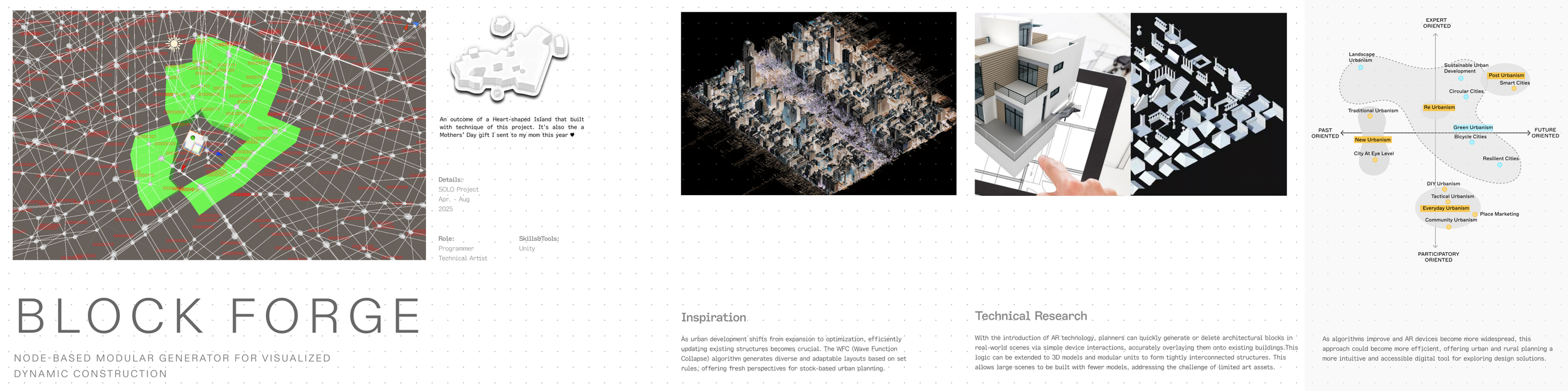 This project introduces a node-based modular generator for visualized dynamic construction which is suitable for building game terrains and organically connected building blocks.It also provide possible innovative solutions for stock-based urban planning.